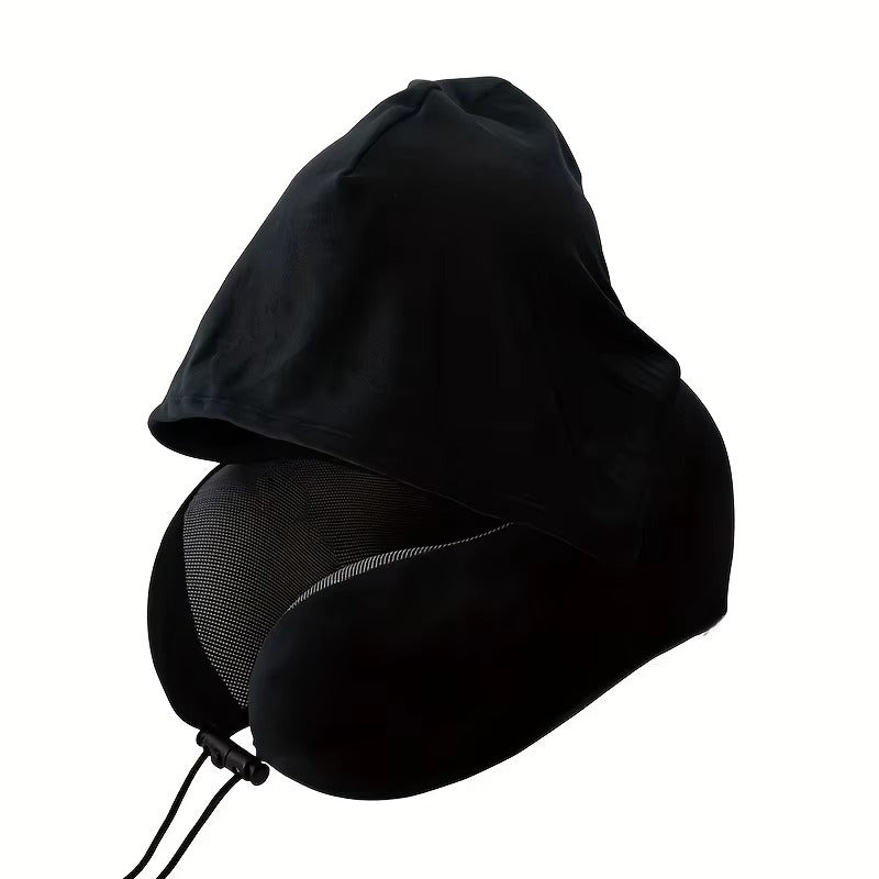 Memory Foam Hooded U-Shaped Travel Pillow with Detachable Cover Portable Neck Support for Airplane Office Nap Car and Home Use